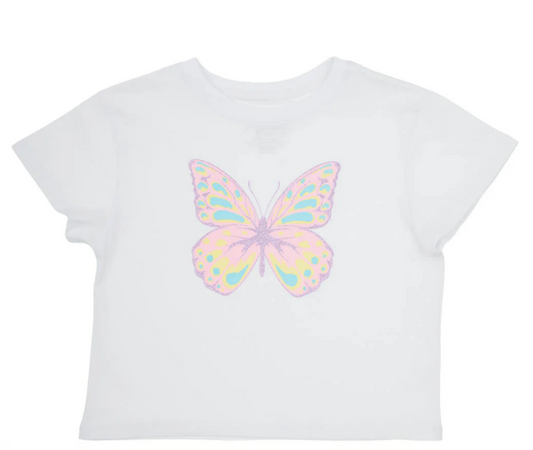 Azarhia Sequin Butterfly White Boxy Tee