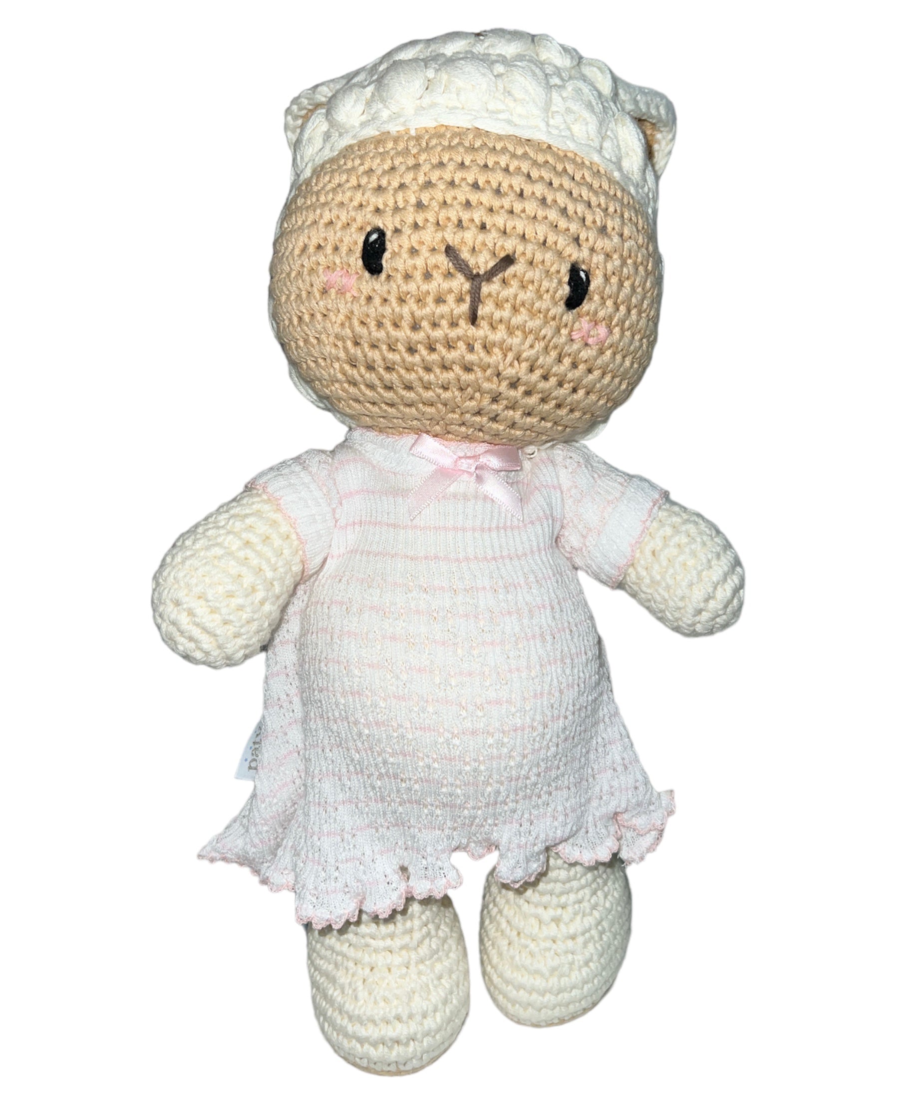 13" Paty Pal Medium Crocheted Lamb w/ Pink Dress