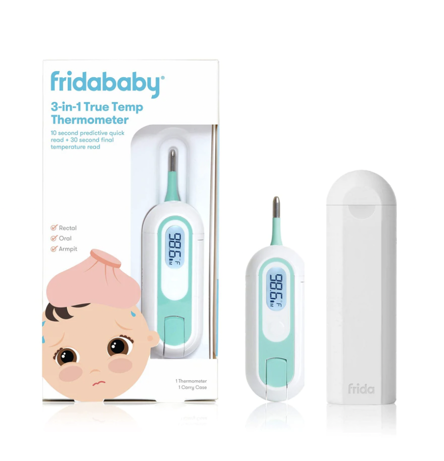 Get the temp, no butts about it! The 3-in-1 True Temp Thermometer for rectal, oral, or armpit use will be your fever-fighting BFF. It delivers a 10 second quick read with an automatic second check, so you don't have to second guess. Plus the Parent Proof Stopper + LED lights makes tush temp checks worry-free.