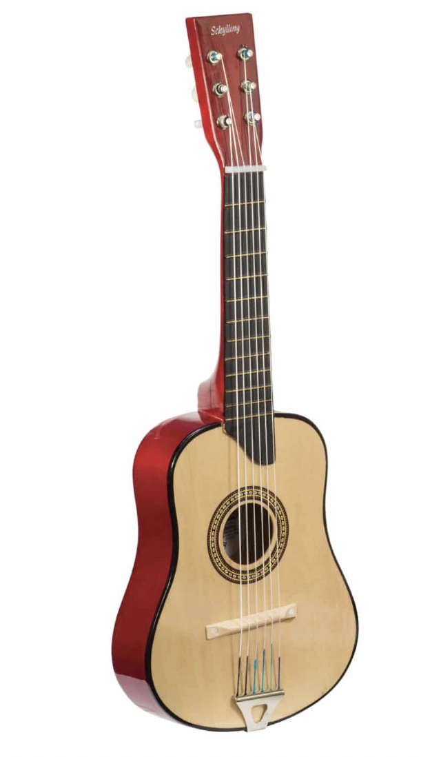 Strum along to your favorite tune or rock out in a band with our wooden guitar! Features a wooden bridge, metal tail piece, ivory-like tuning pegs and nylon strings Packaged in a decorated box with an extra string, pick and detailed tuning instructions.