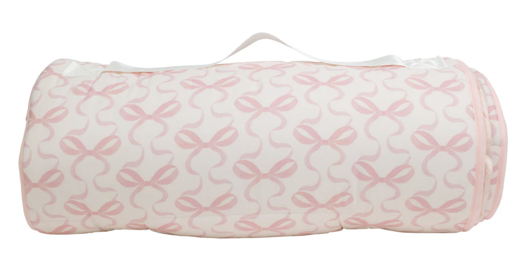 Have no fear about your child sleeping on the ground at school - The Nap Mat is pure luxury! Made from cotton with soft bamboo pillowcase and blanket inside, and poly fill throughout. Plush and comfortable, your toddler is sure to get great rest. Shoulder strap is two inches wide to allow plenty of room for embroidery.