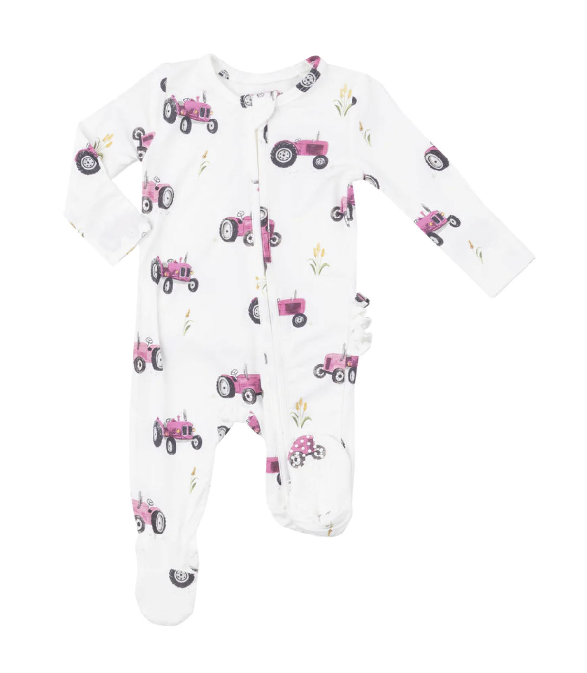 Angel Dear Pink Tractors 2 Way Ruffle Footie