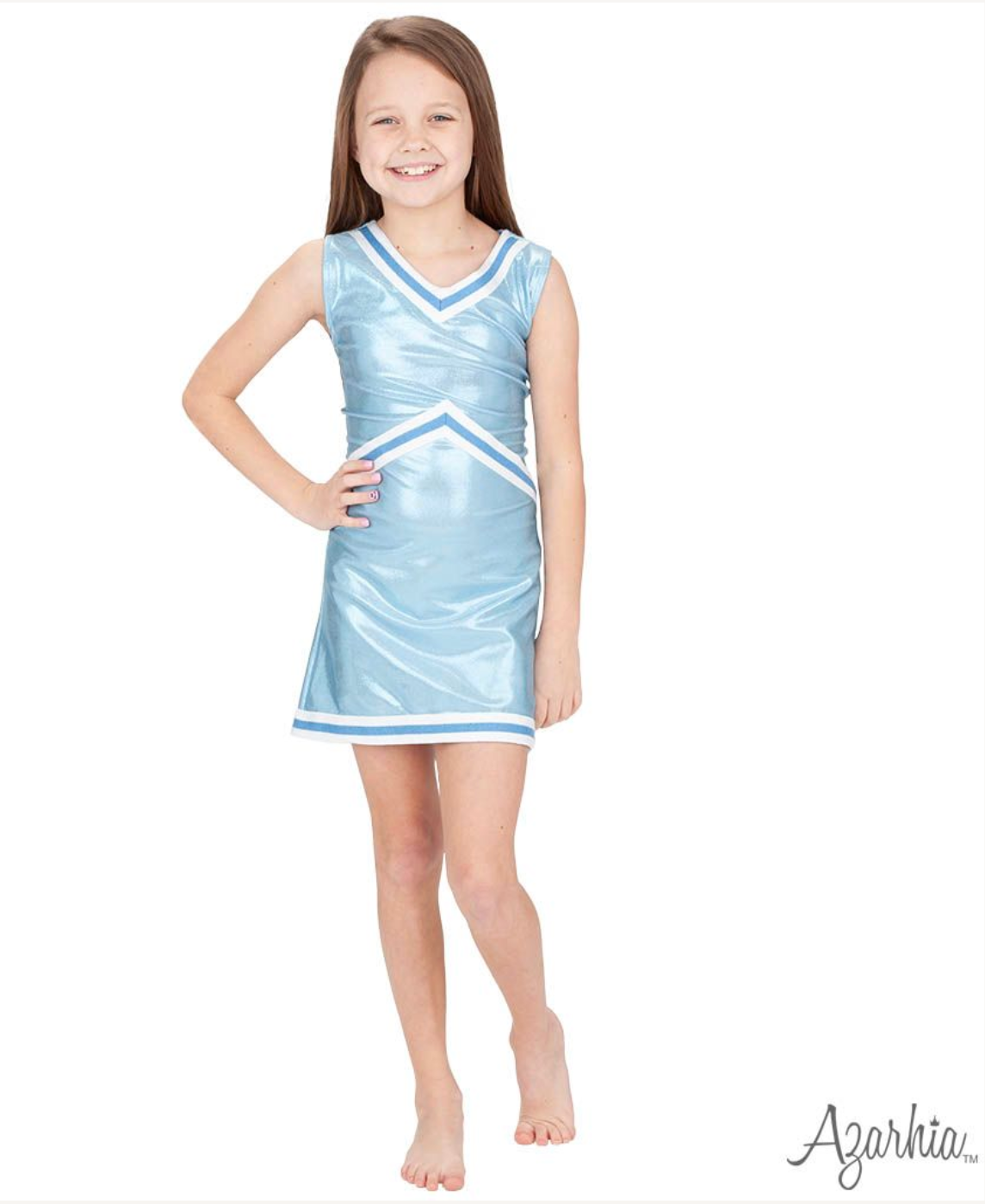 Azarhia Shimmer Cheer Suit in Light Blue Game Day.