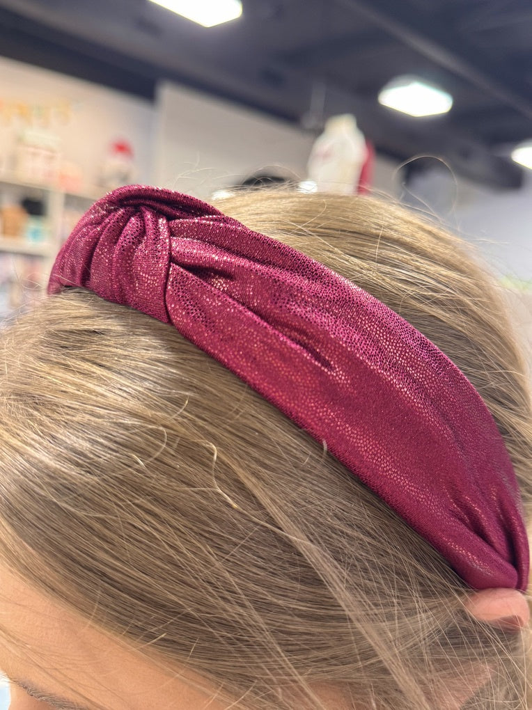 Azarhia Top Knot Headband in Maroon Shimmer.