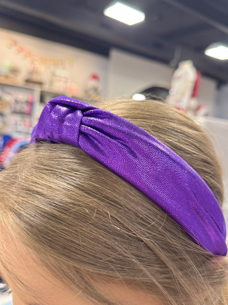 Azarhia Top Knot Headband in Purple Shimmer.