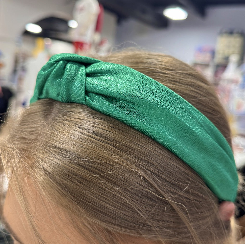 Azarhia Top Knot Headband Kelly Green Shimmer.