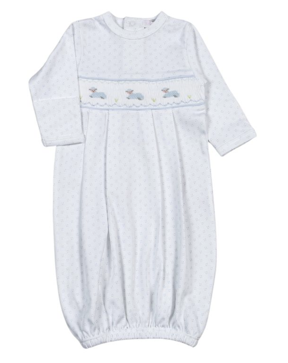 Baby Loren Blue Baby Lamb Hand Smock Pima Gown.