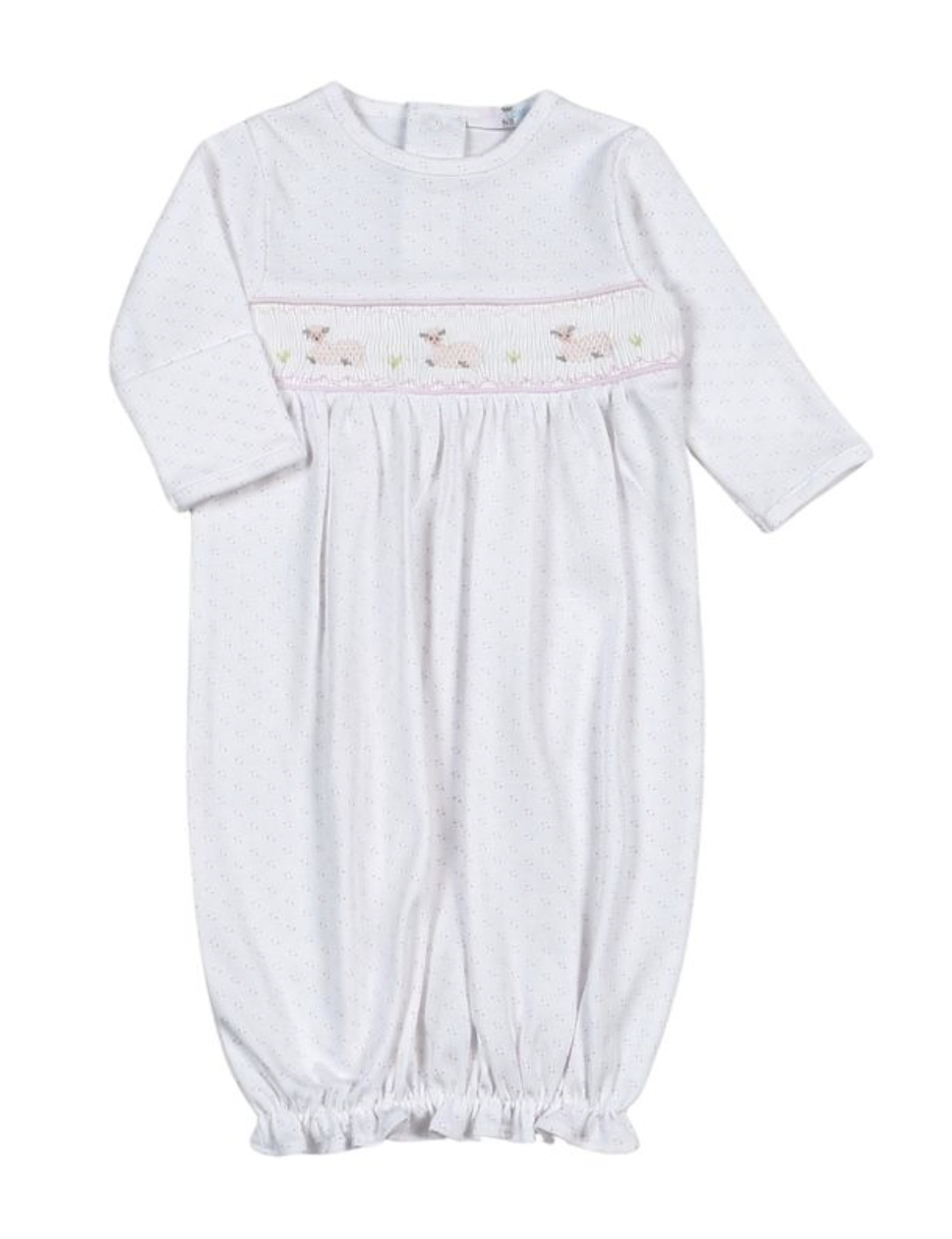 Baby Loren Pink Baby Lamb Hand Smock Pima Gown.