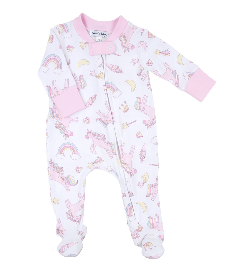 Magnolia Baby Believe in Magic Pink Print Zip Footie.
