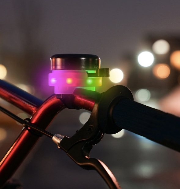 Even handlebars need a sparkle! BellBrightz has a crisp, clear ring of light under a classic bell that attaches to your handlebars for a cool glow that can be seen and heard from a distance. Simply push the bell button and watch the twinkling lights in action.