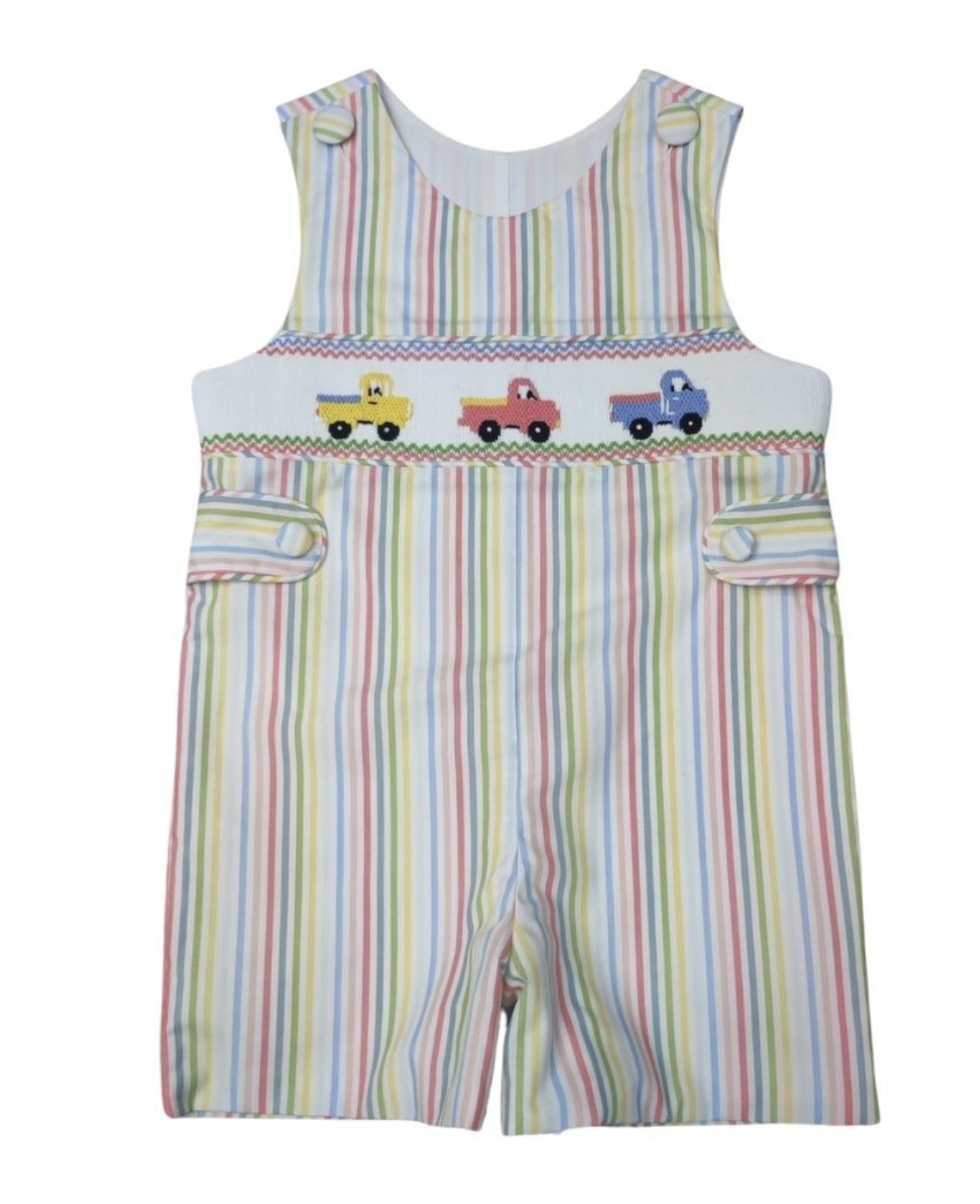 Boys Red Yellow Blue Stripe Smocked Trucks JonJon