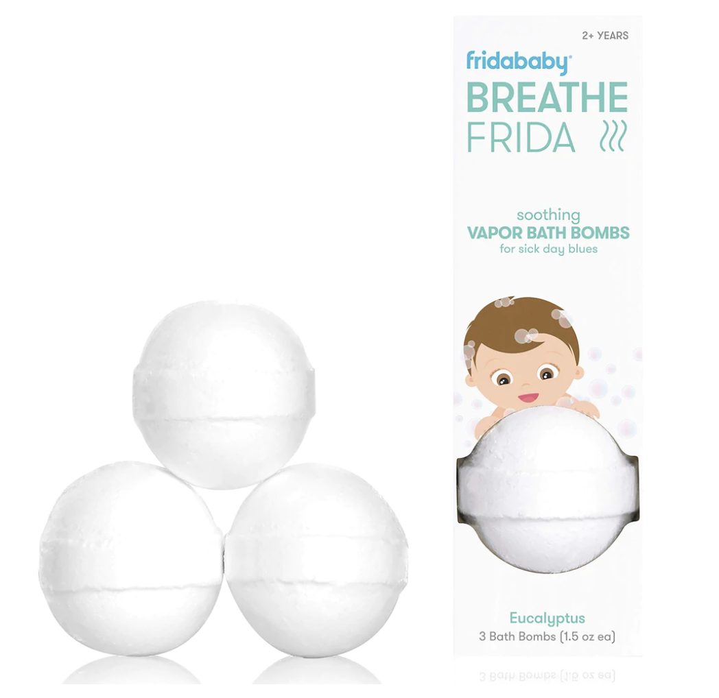 When your kiddo's airways are more congested than the airport on Thanksgiving, throw a BreatheFrida Vapor Bath Bomb in the tub and breathe in soothing aromas! With eucalyptus and lavender oils, our Vapor Bath Bombs will help get you through cold & flu season. And hey, they work for adults, too!