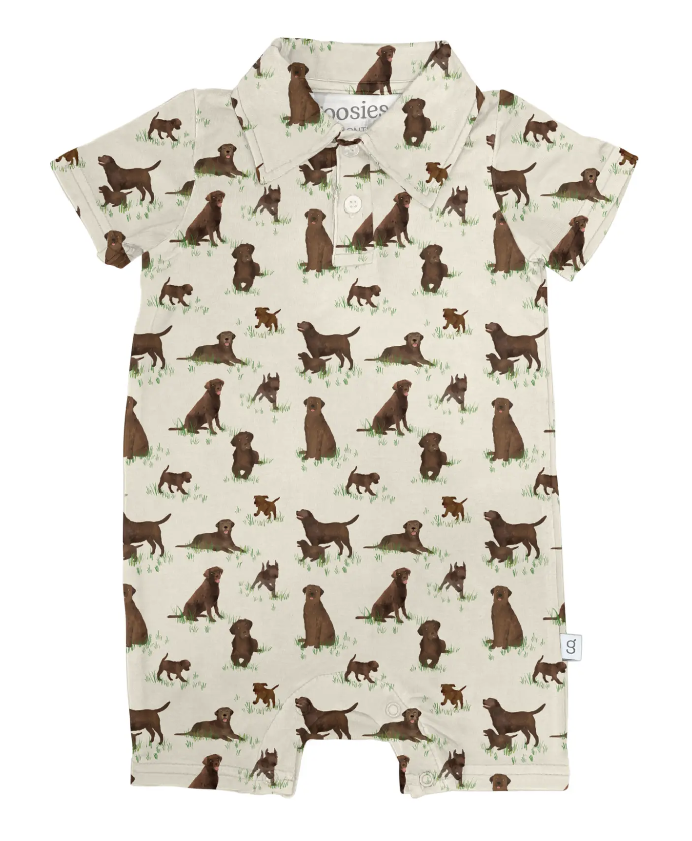 Our Short Sleeve Polo Rompers are the perfect combination of a classic style and comfort. 95% bamboo from viscose, 5% spandex. Tagless. Machine wash cold on gentle with like colors. Tumble dry low, if needed.