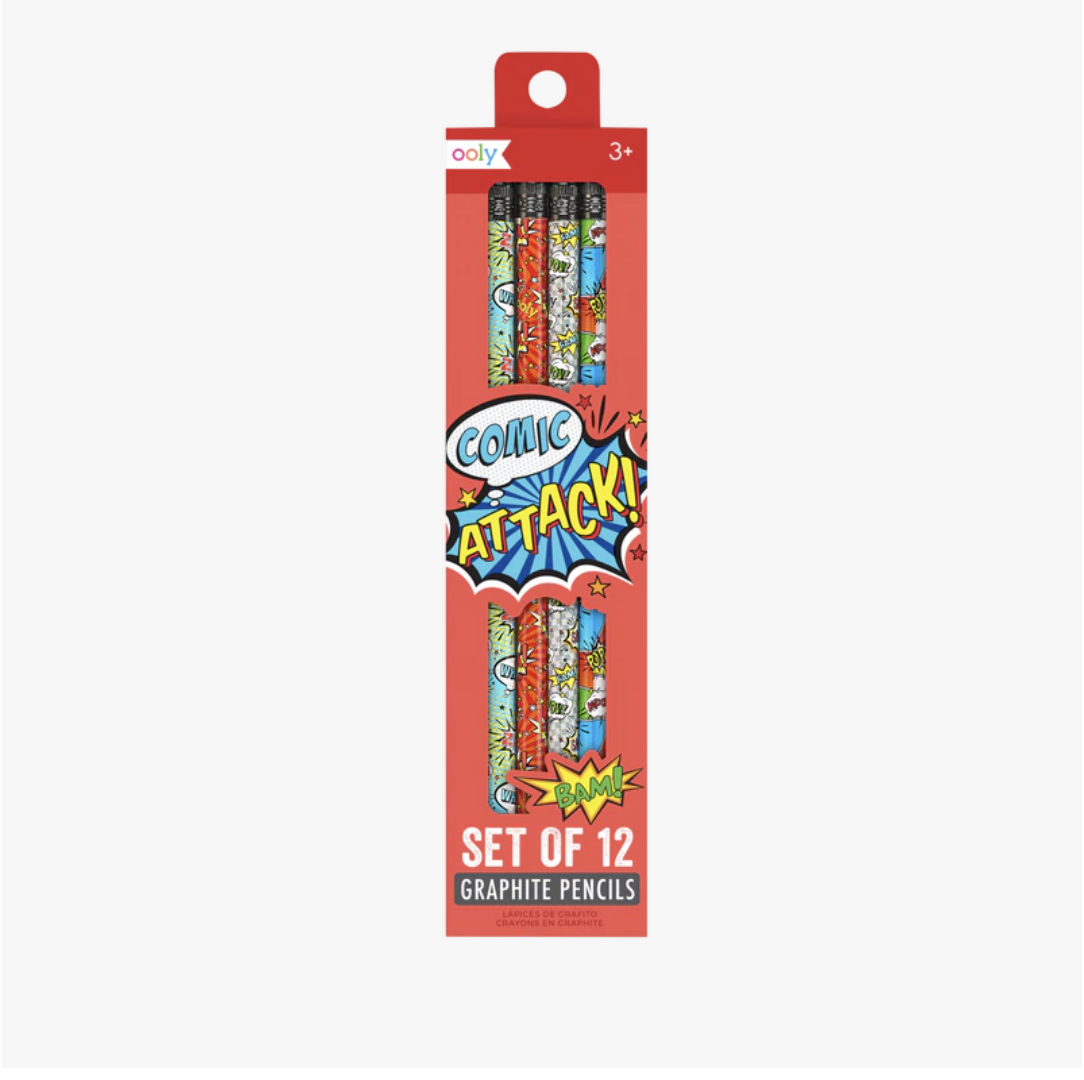 Comic attack graphite pencils.