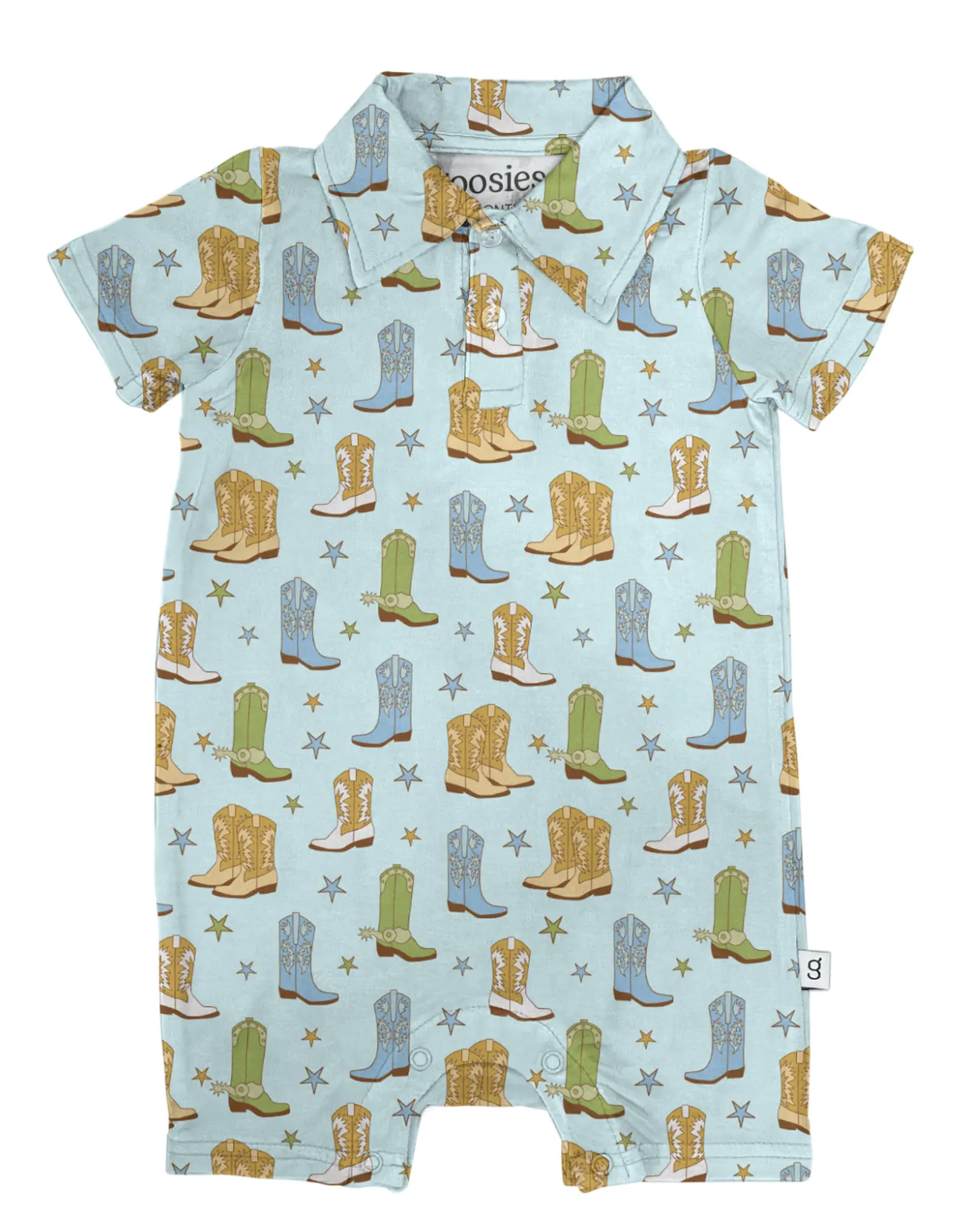 Our Short Sleeve Polo Rompers are the perfect combination of a classic style and comfort. 95% bamboo from viscose, 5% spandex. Tagless. Machine wash cold on gentle with like colors. Tumble dry low, if needed.