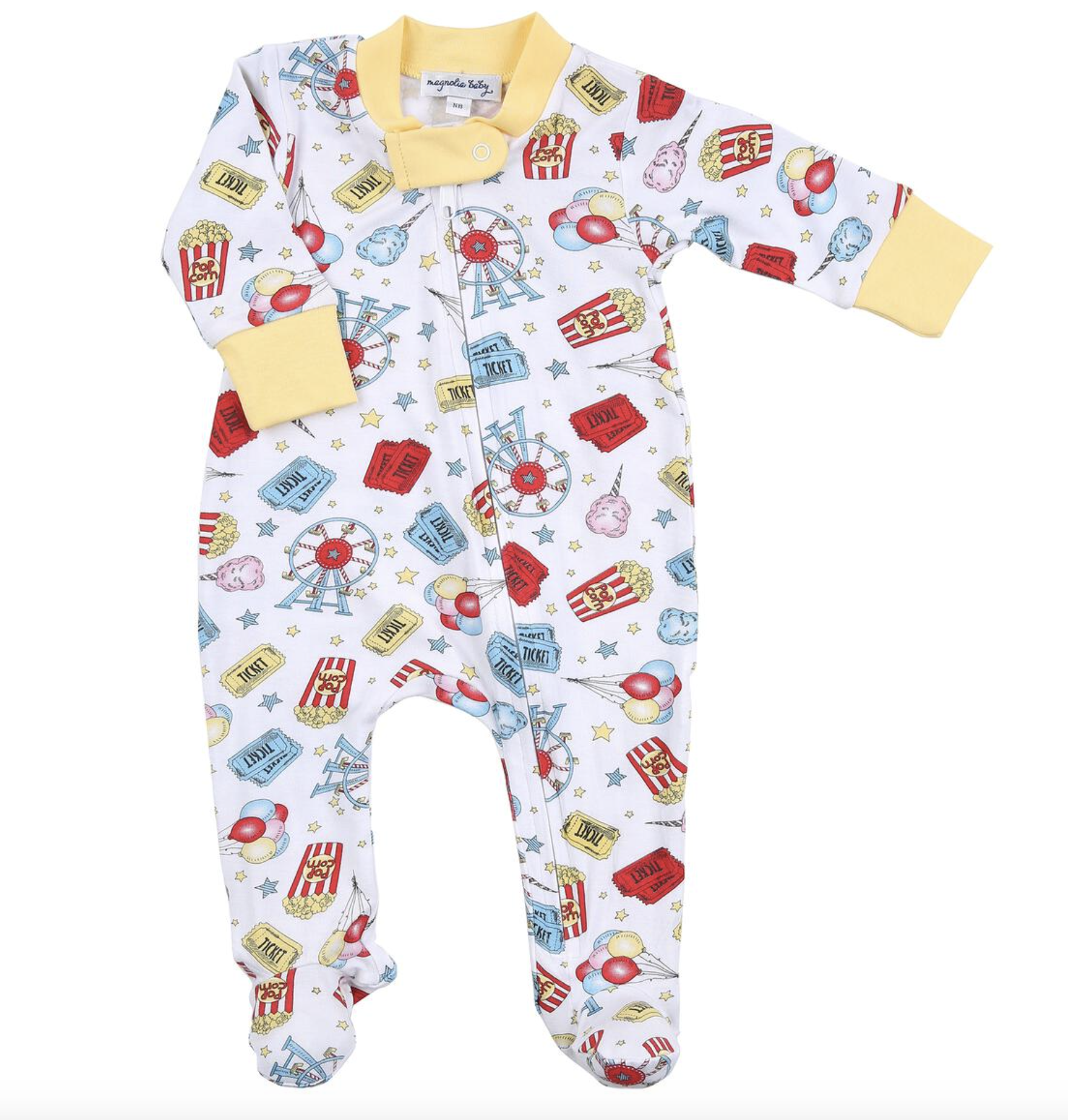 Magnolia Baby Day at the Fair Yellow Printed Zipper Footie.