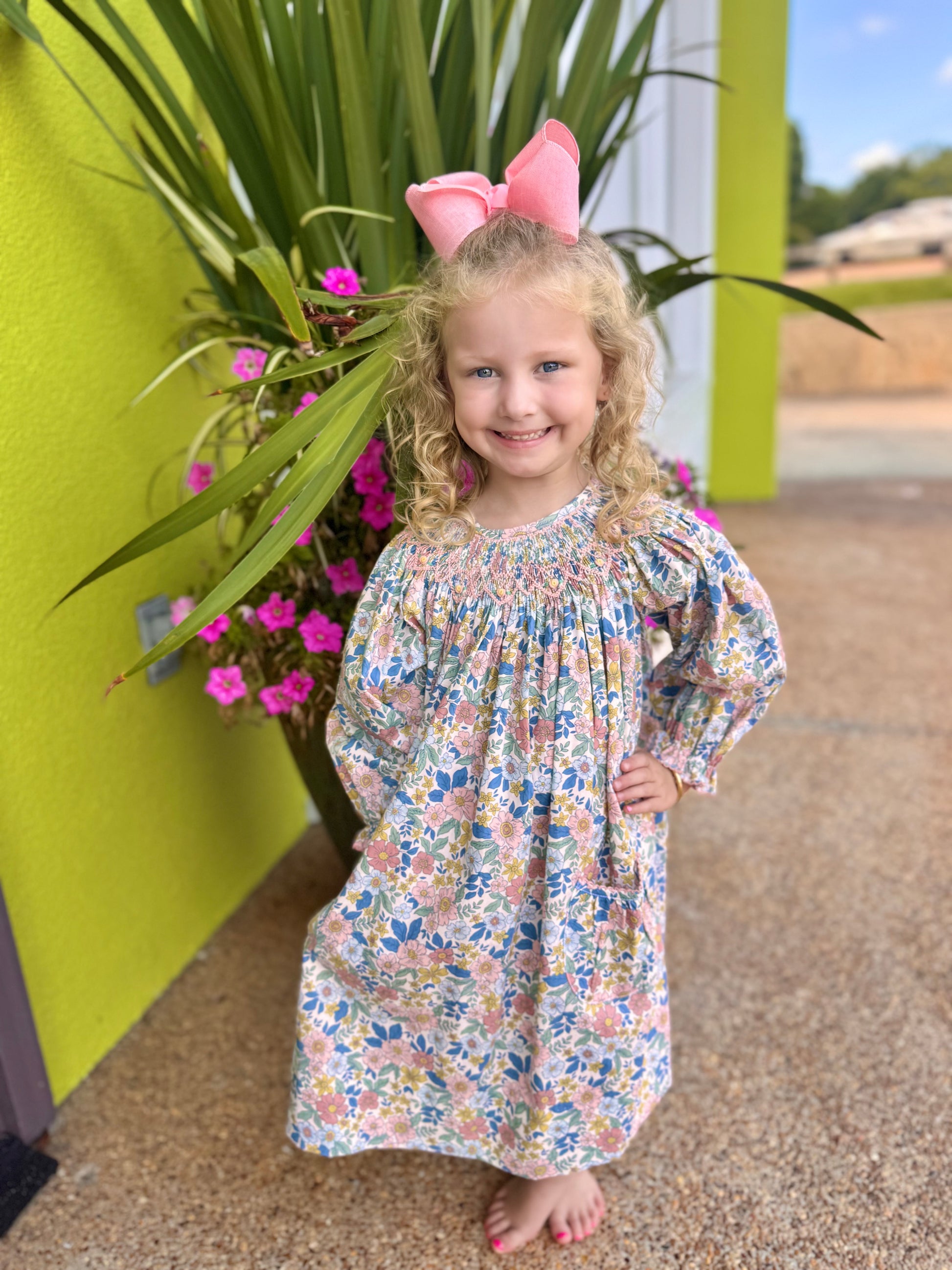 Delaney Girls Floral Smocked LS Dress