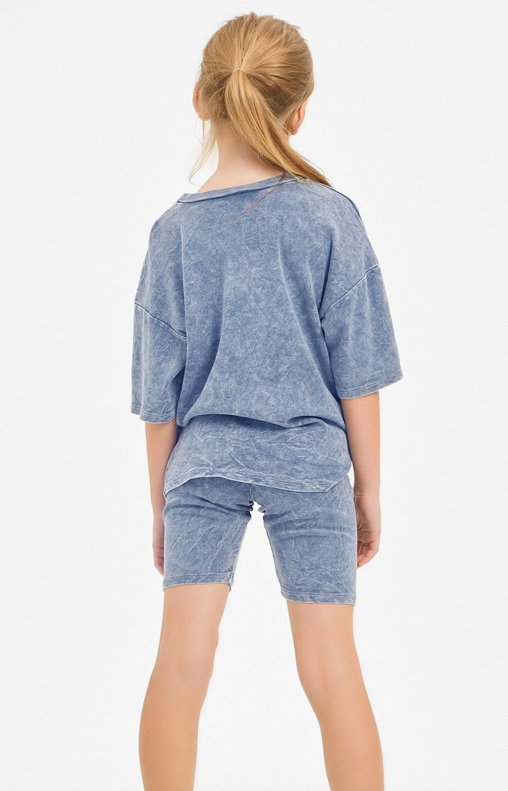 Denim Blue Mineral Washed Top and Biker Shorts Set