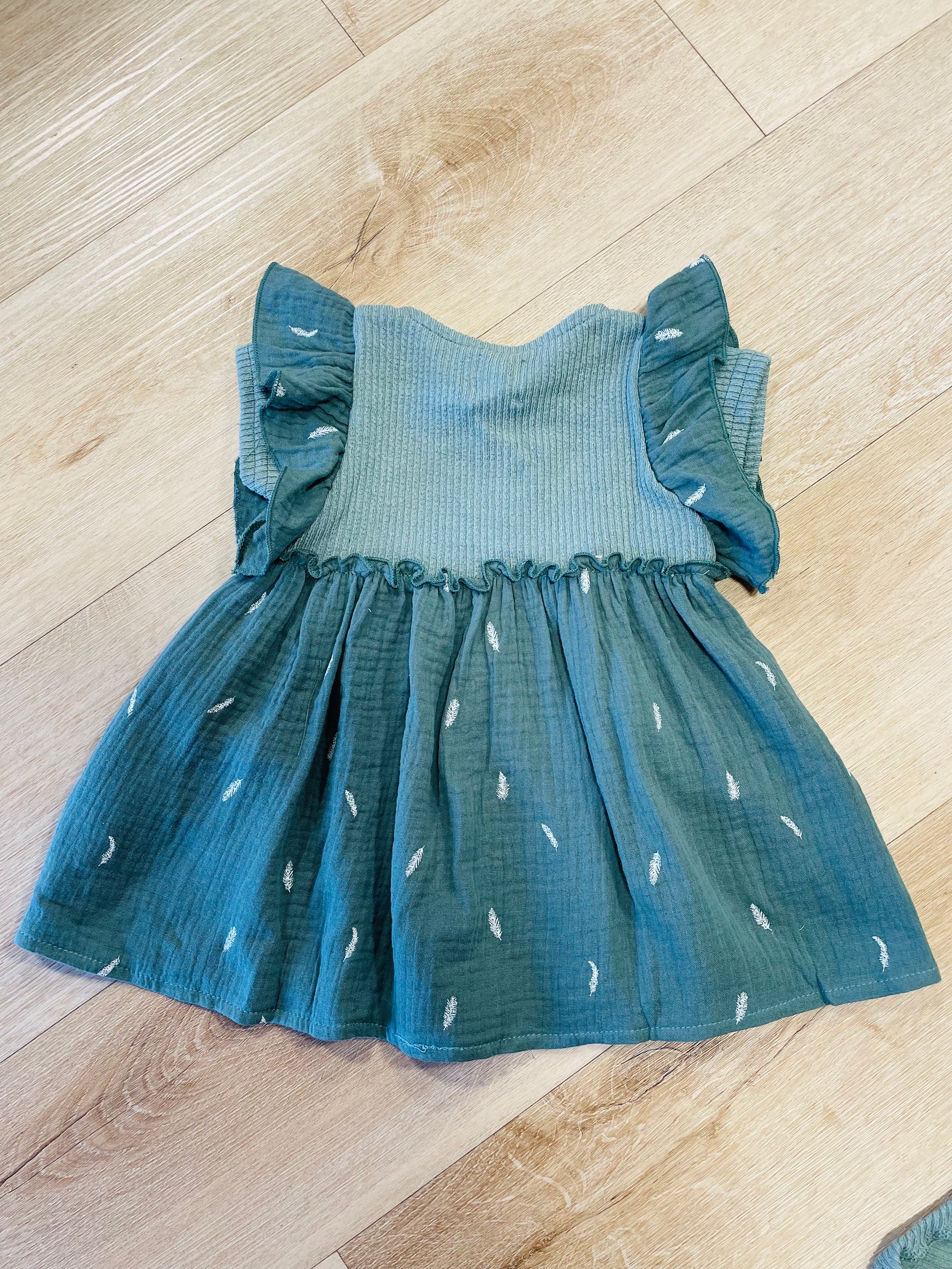 Etti H Cadan Feathered S/S Dress Hunter Green