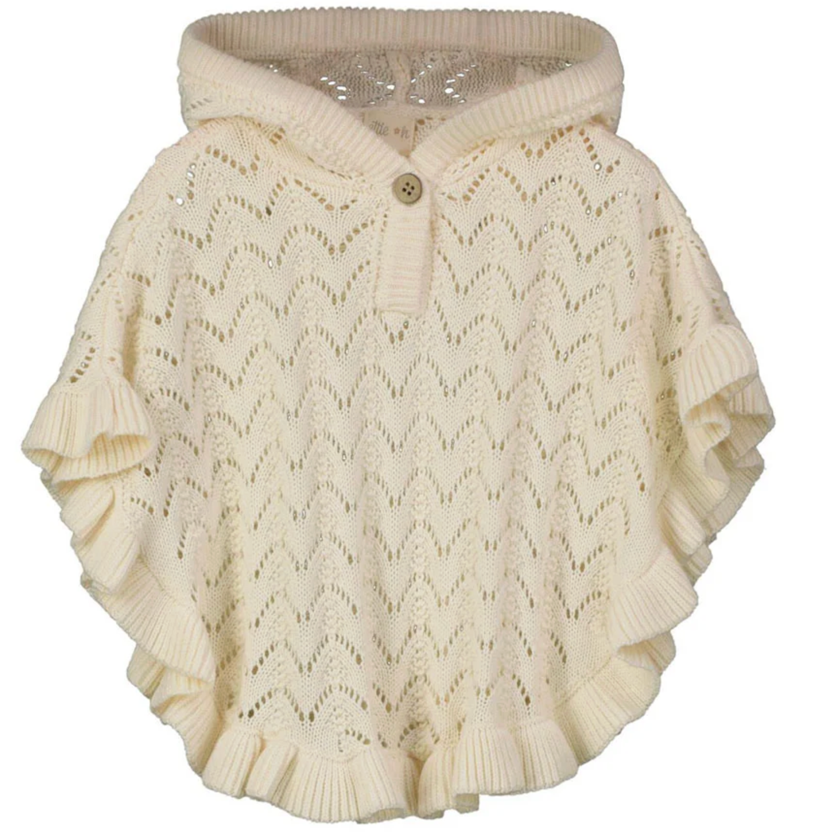 Introducing the ivory Loveday Hooded Poncho - a playful addition to your little one's wardrobe! Made from soft knit material, this poncho is perfect for keeping them cozy and stylish. Whether they're playing or lounging, the Loveday poncho is sure to become a beloved favorite.