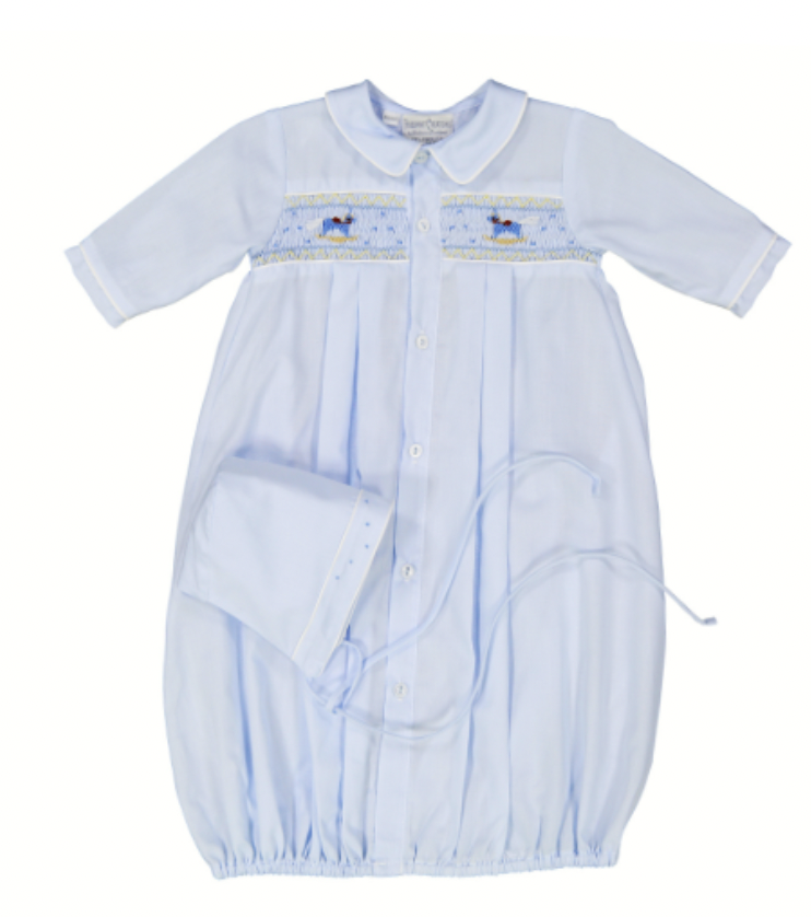 FB Blue Rocking Horse Smocked Gown