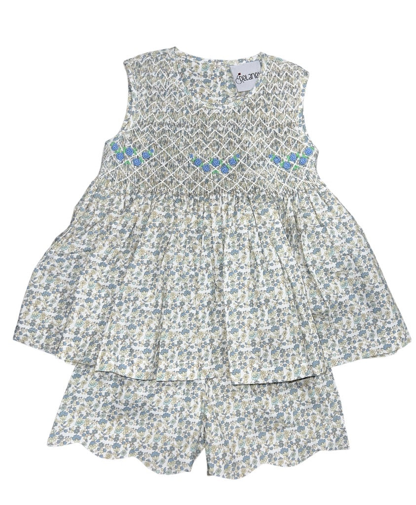 Delaney Floral Fully Smocked Bodice Top & Short Set.