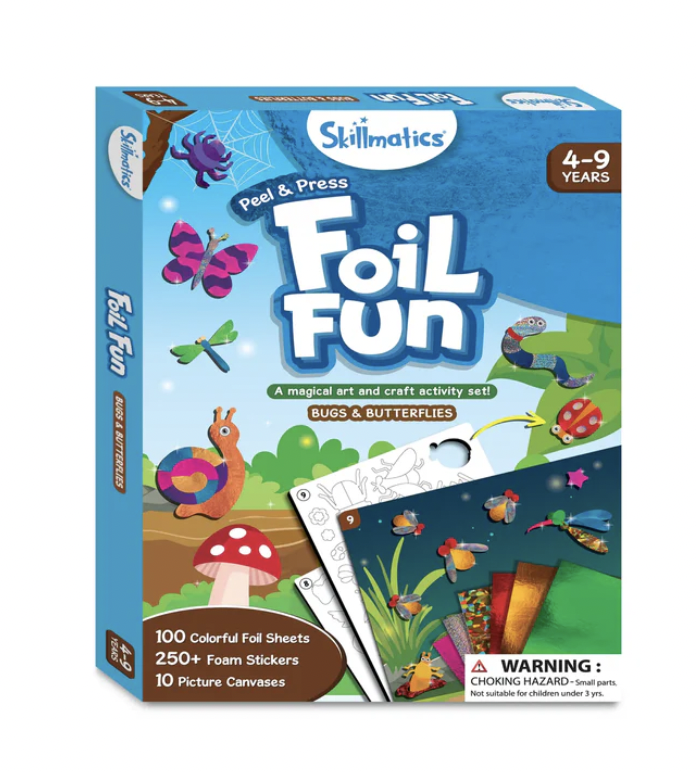 Foil Fun is a magical, mess-free activity to inspire hours of creative fun in your little one. Let their imagination soar as they create unique foil pictures featuring ladybugs, grasshoppers, dragonflies, butterflies, and more, sparking hours of creative play! Select a Picture Canvas, choose stickers and apply color using sparkly foil sheets. Add as many colorful stickers as needed to bring the canvases to life.