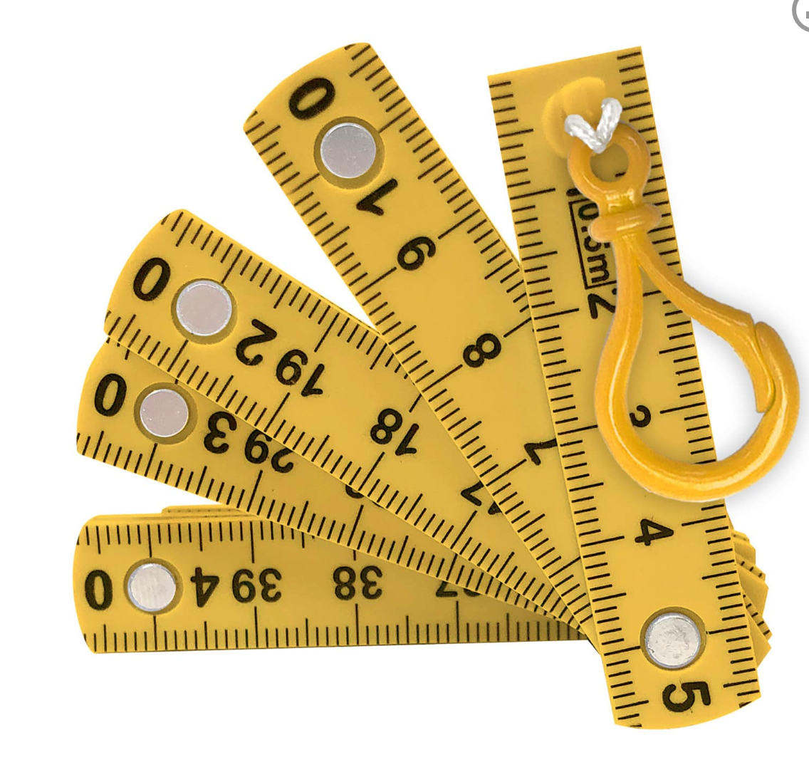 The Little Helper folding ruler is a great addition to your toolbox! Each ruler shows inches and metric.