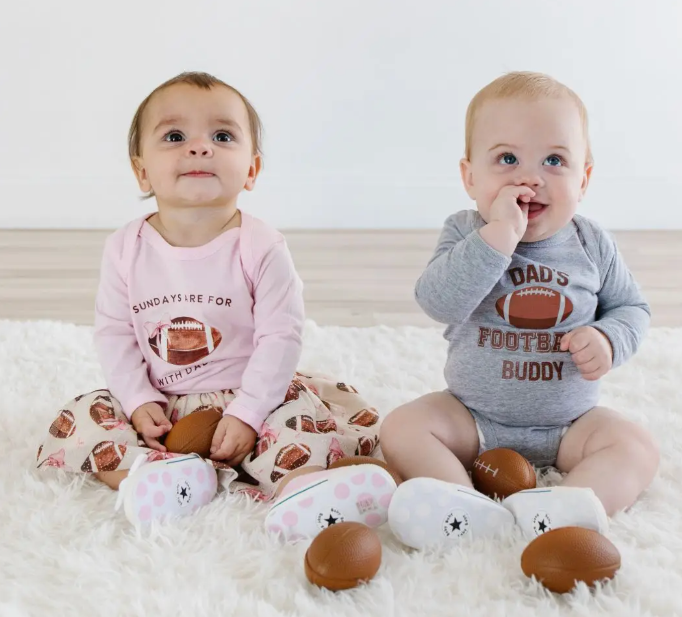 The Football With Daddy Long Sleeve Bodysuit is a fun and cute bodysuit for babies celebrating Game Day!
