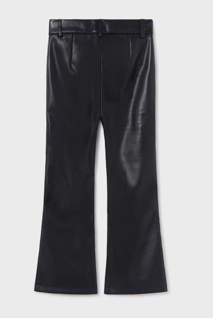 Pants for girl. Single button fastening. Modern leatherette exterior. Functional front pockets.