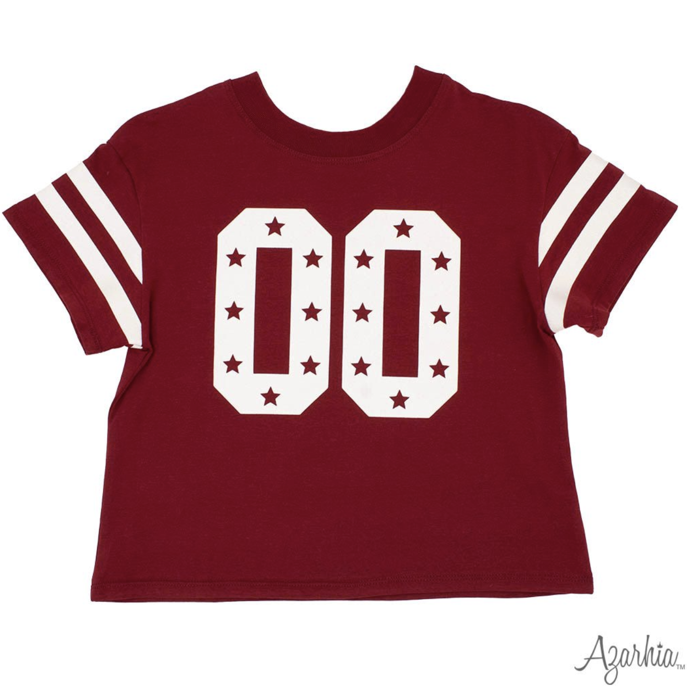 Glitter Double 00 Stars Boxy T Maroon Game Day.