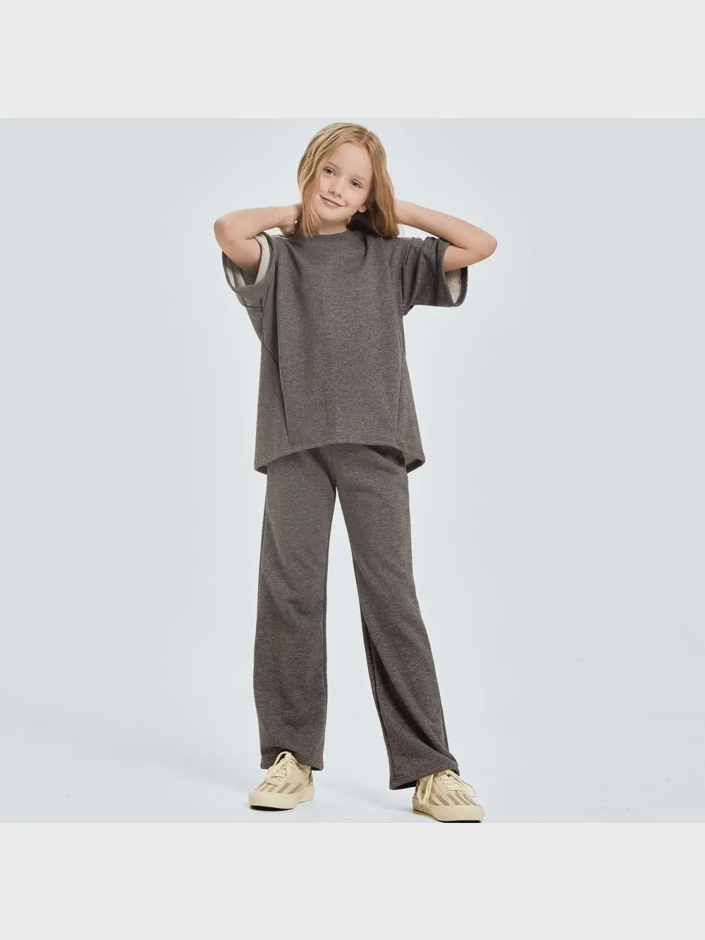 Good Girl Cotton French Terry Pant Set - Lt Grey