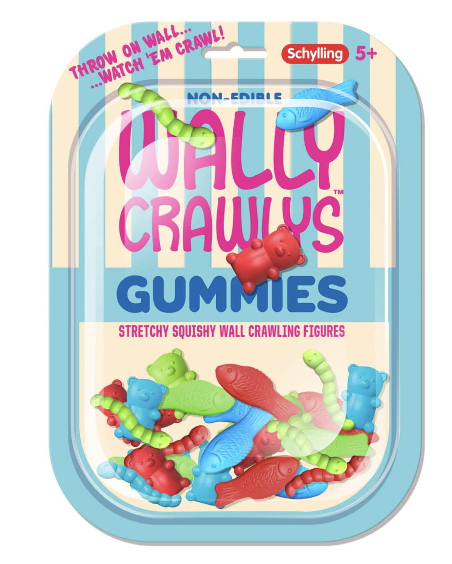 Toss’em on the wall and watch’em crawl! Wally Crawlys let you have stretchy, squishy wall-crawling fun. Watch Gummies Wally Crawlys tumble, stretch, and slide their way down with funny animated movement. Action so sweet you’ll be grabbing for some treats! Each pack comes with gummy fish, worms, and bears. Wally Crawly’s are fun to throw on glass or up against the wall. Mix & match your Wally Crawlys to watch a mashup of bendy, squishy fun unfold!