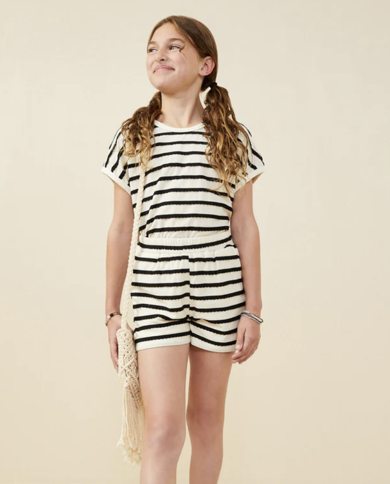 Hayden Girl Black Textured Stripe Short Set