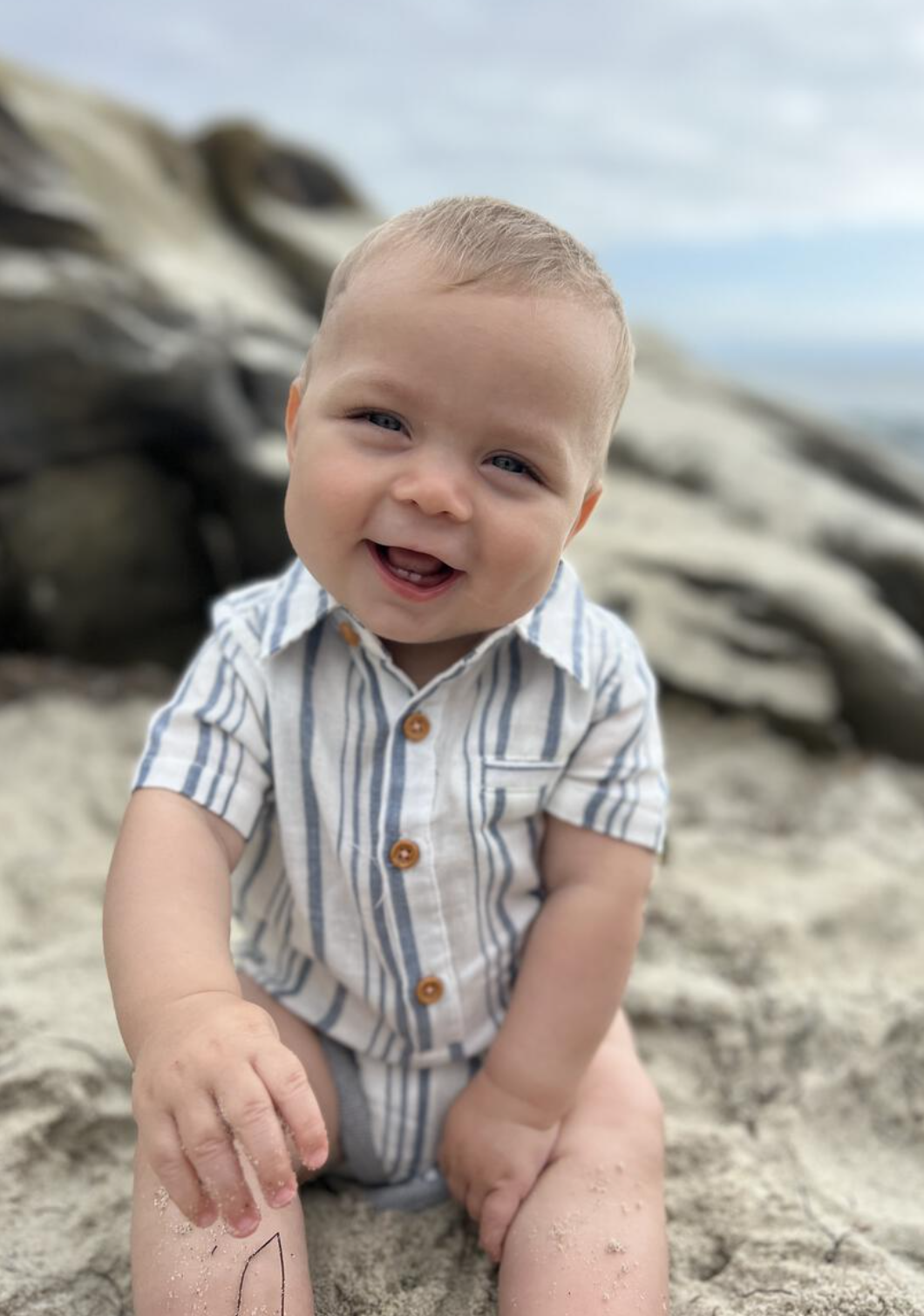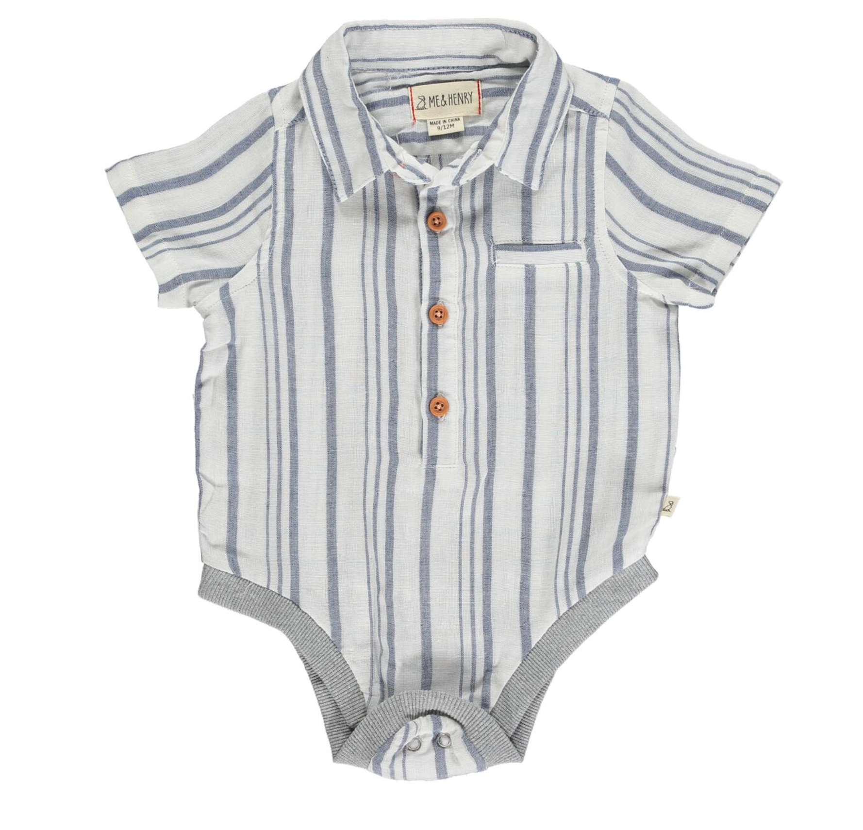 Me & Henry Helford Blue/White Stripe Woven Onesie.