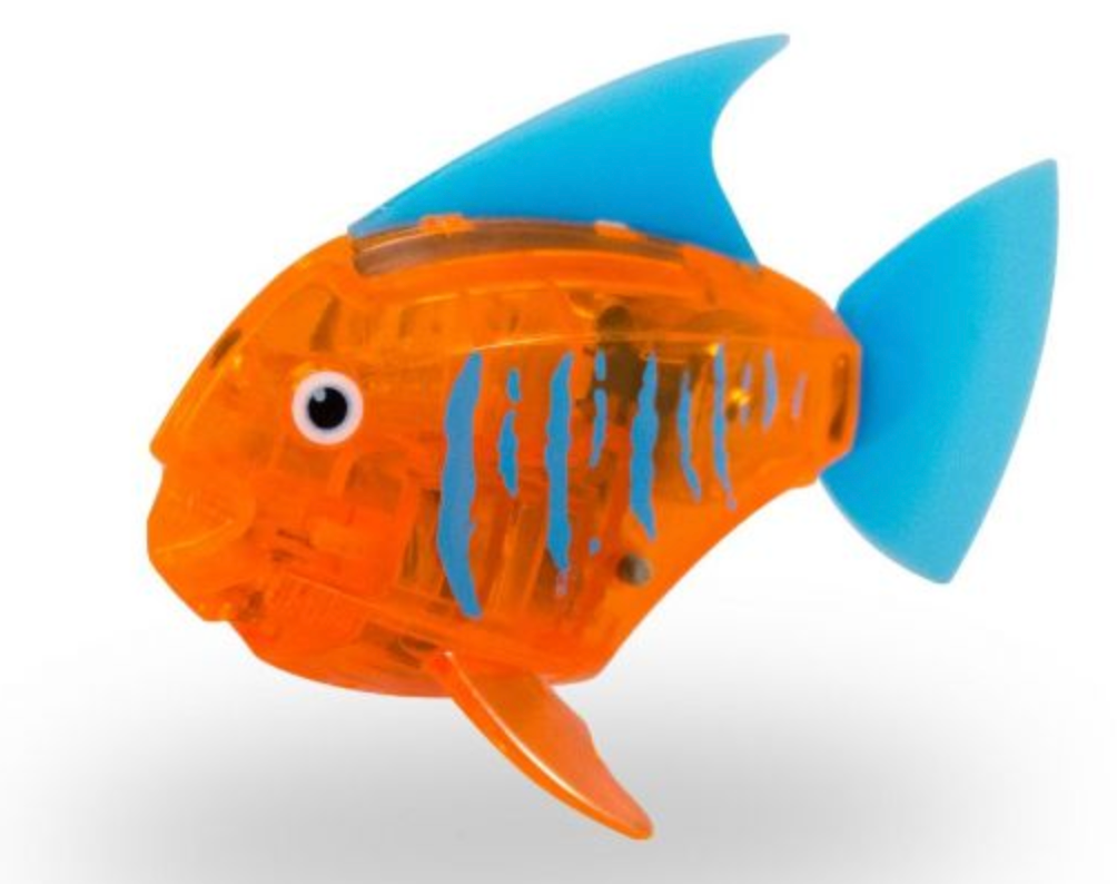Powered by electro-magnetic propulsion and an automatic on and off sensor that activates when submerged in water, these aquatic fish propel around to explore their environment, swimming, diving and changing directions. After five minutes without activity, the AquaBot™ 2.0 will go into sleep mode and wake when activated