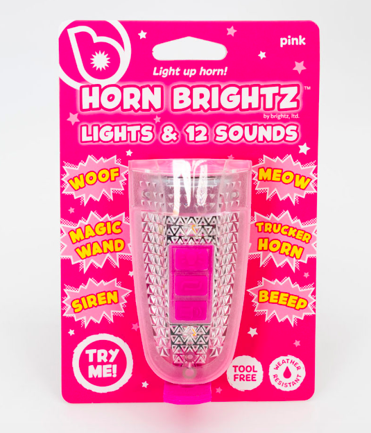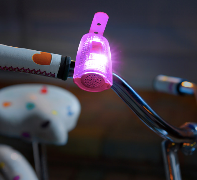 Nothing says “Coming through!” like a light-up bike horn packed with 12 fun sounds! Choose from a honk, moo, traditional bell ring, and more, then turn on the lights and ride!