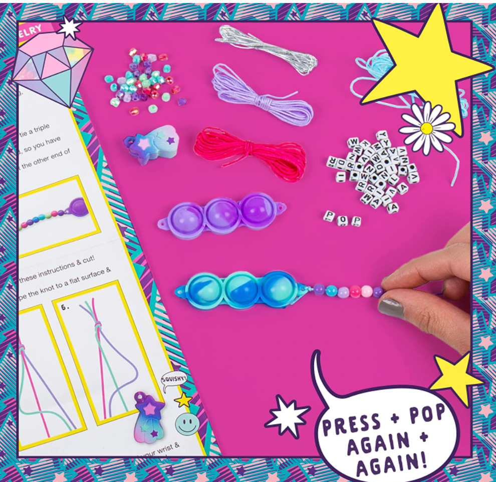 - FIDGET TOYS MEET STYLE: This bracelet-making set puts a one-of-a-kind sensory spin on traditional DIY jewelry kits — it comes with never-ending poppable bands and super-soft squishy charms you can use to fidget and feel good!