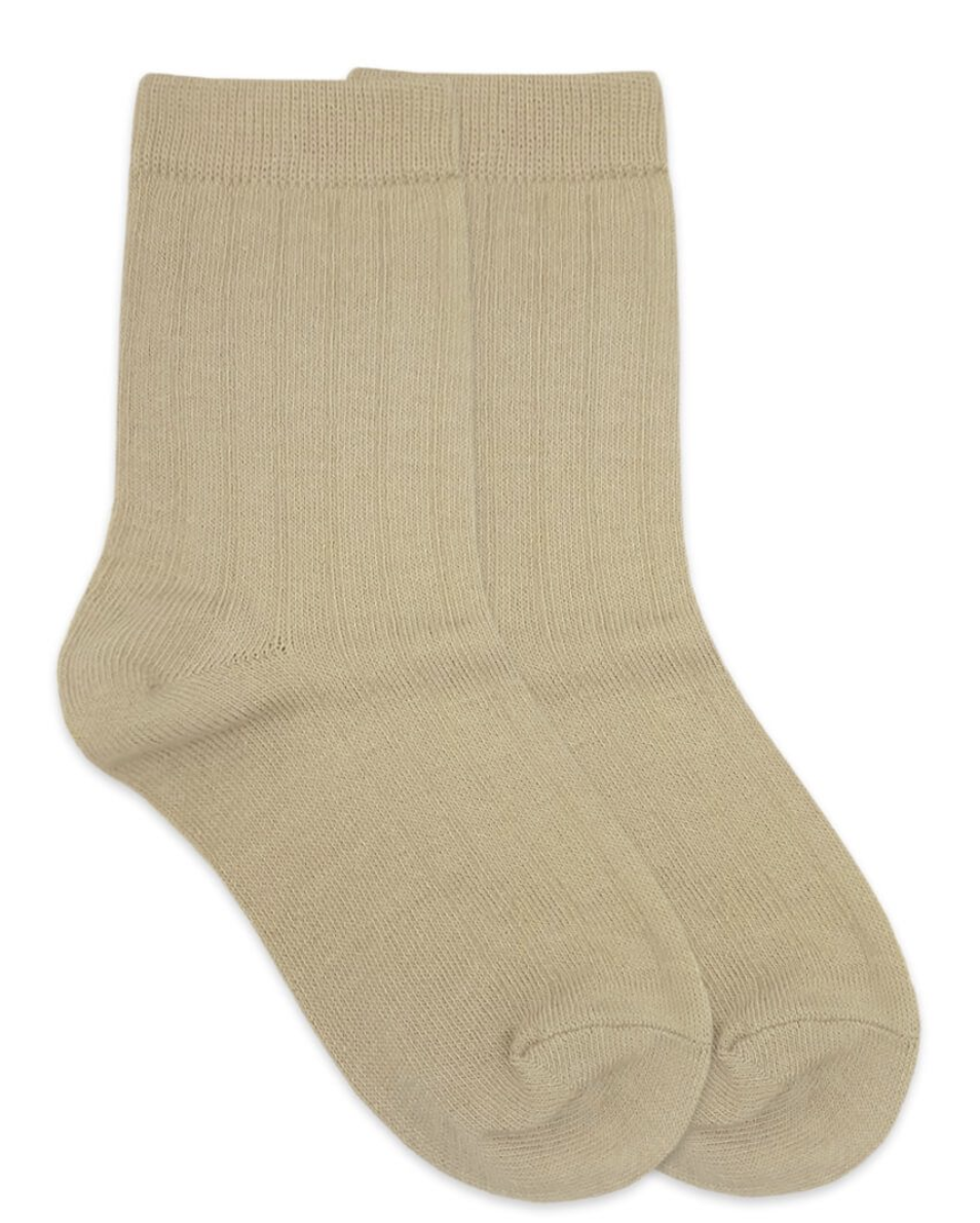 Khaki Cotton Rib Crew Socks