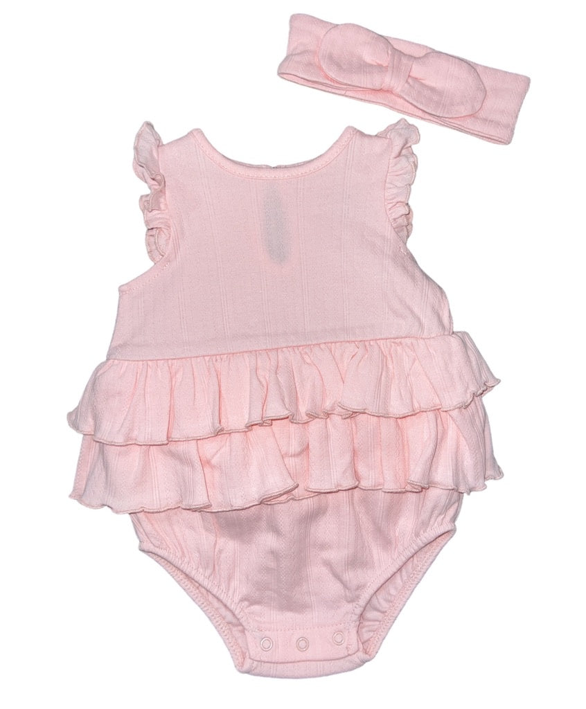 Little Me Pink Ruffle Sunsuit w/Headband