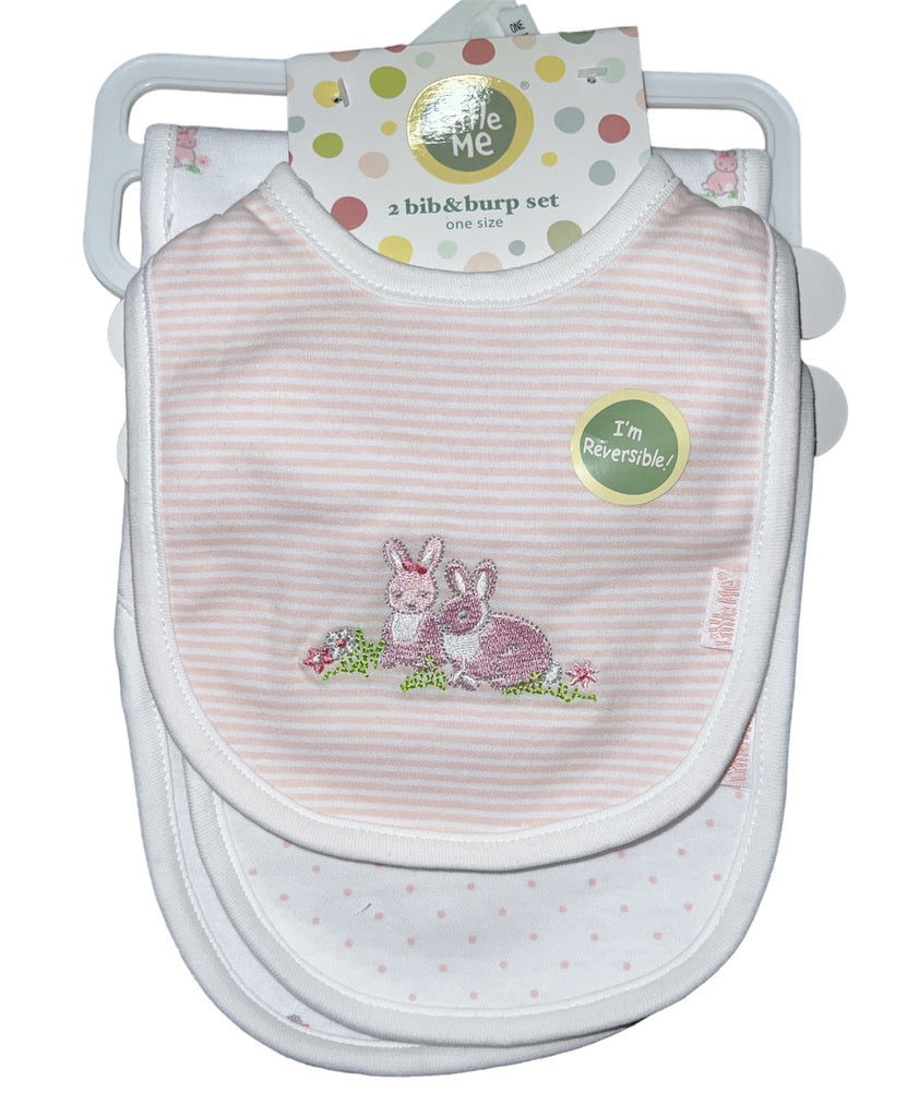 Little Me Set of 2 Pink Bunnies Bib/Burp Set