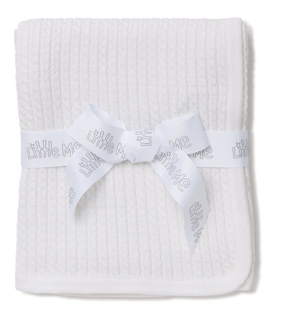 - Your little one will love our incredibly soft cable knit blanket. It is the perfect gift for any little girl or boy and tied with a Little Me ribbon.