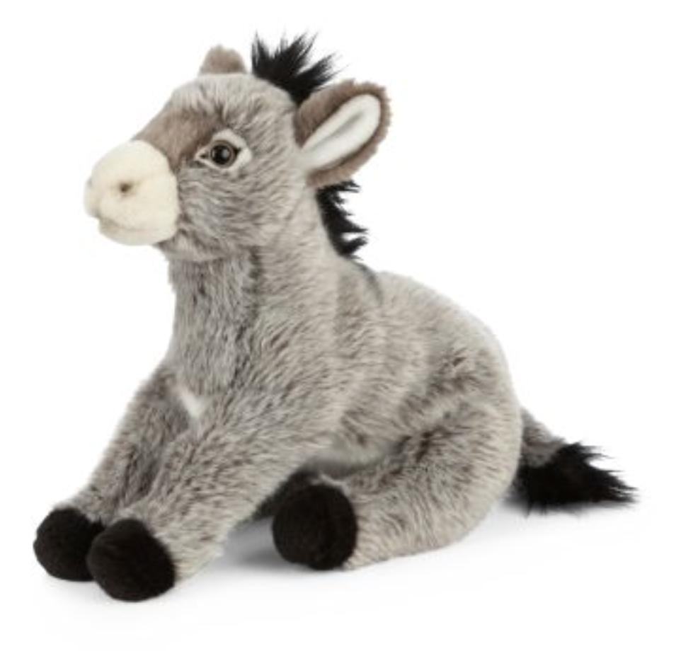 No hay is needed for this super cute donkey plush! Crafted with premium materials this super soft and cuddly donkey is perfect for children. It has tonal faux fur fabric on the body, fluffy mane and tail, and adorable features, perfect for cuddling at bedtime!