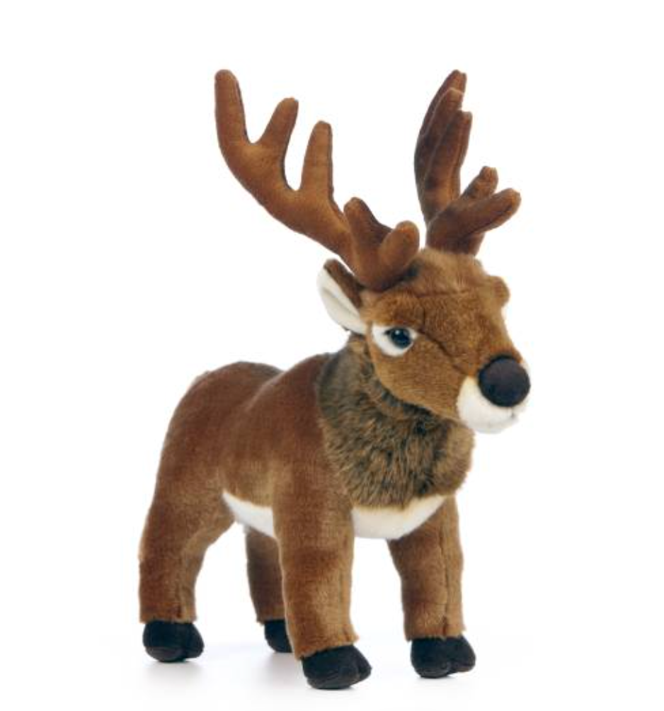 An unmistakable icon of the Scottish highlands, the Red Deer Stag has impressive branched antlers and a dark russet-brown fur. Crafted with realism in mind, our Red Deer Stag soft toy has wonderful life-like features - a thoughtful gift for anyone who loves these majestic animals.
