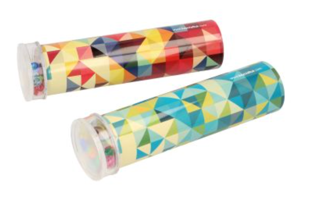 This retro vintage style tin kaleidoscope with a geometric design is great fun for children of all ages! Simply twist the end to reveal colourful changing patterns inside!