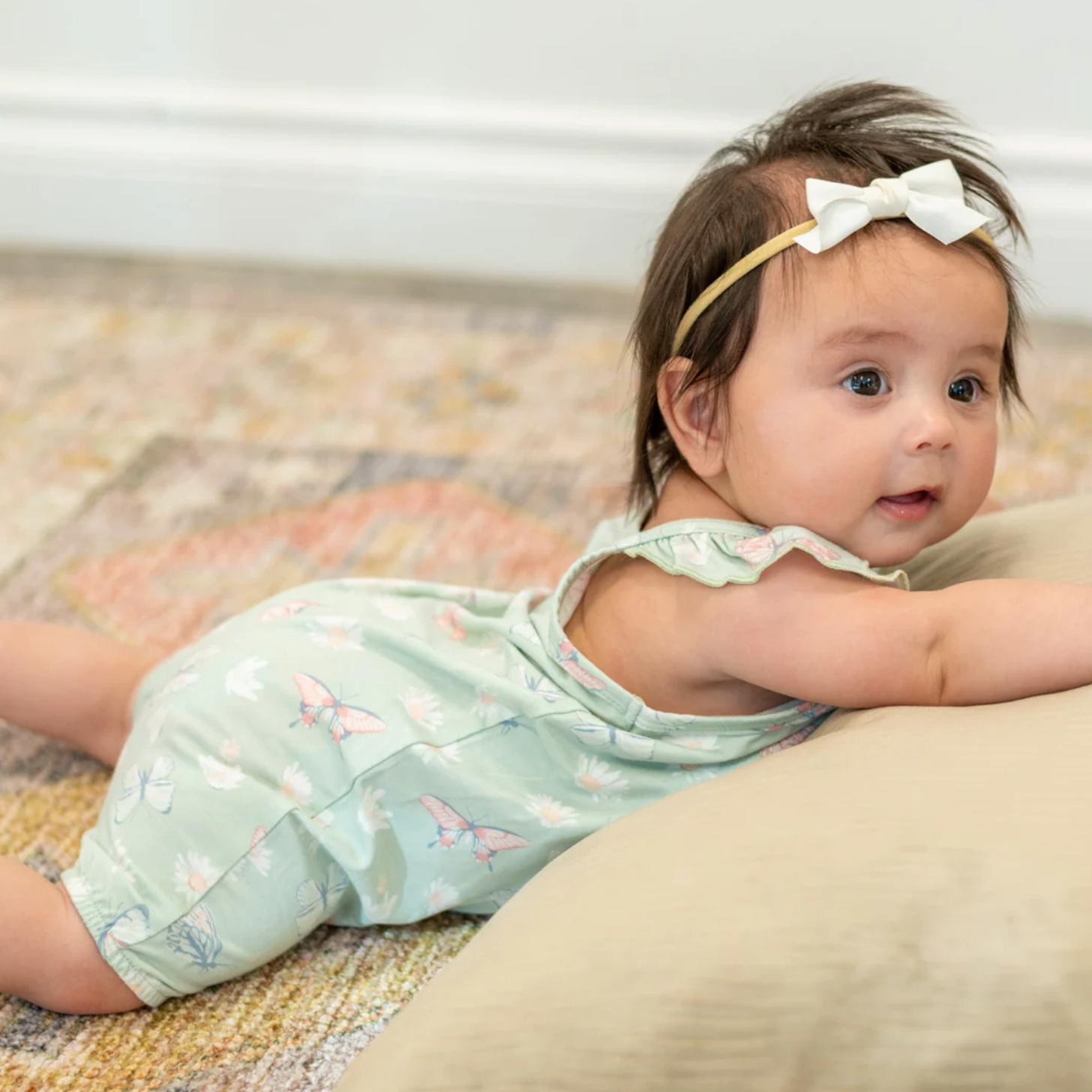 Mint Butterfly Daisy Bamboo Flutter Sleeve Romper
