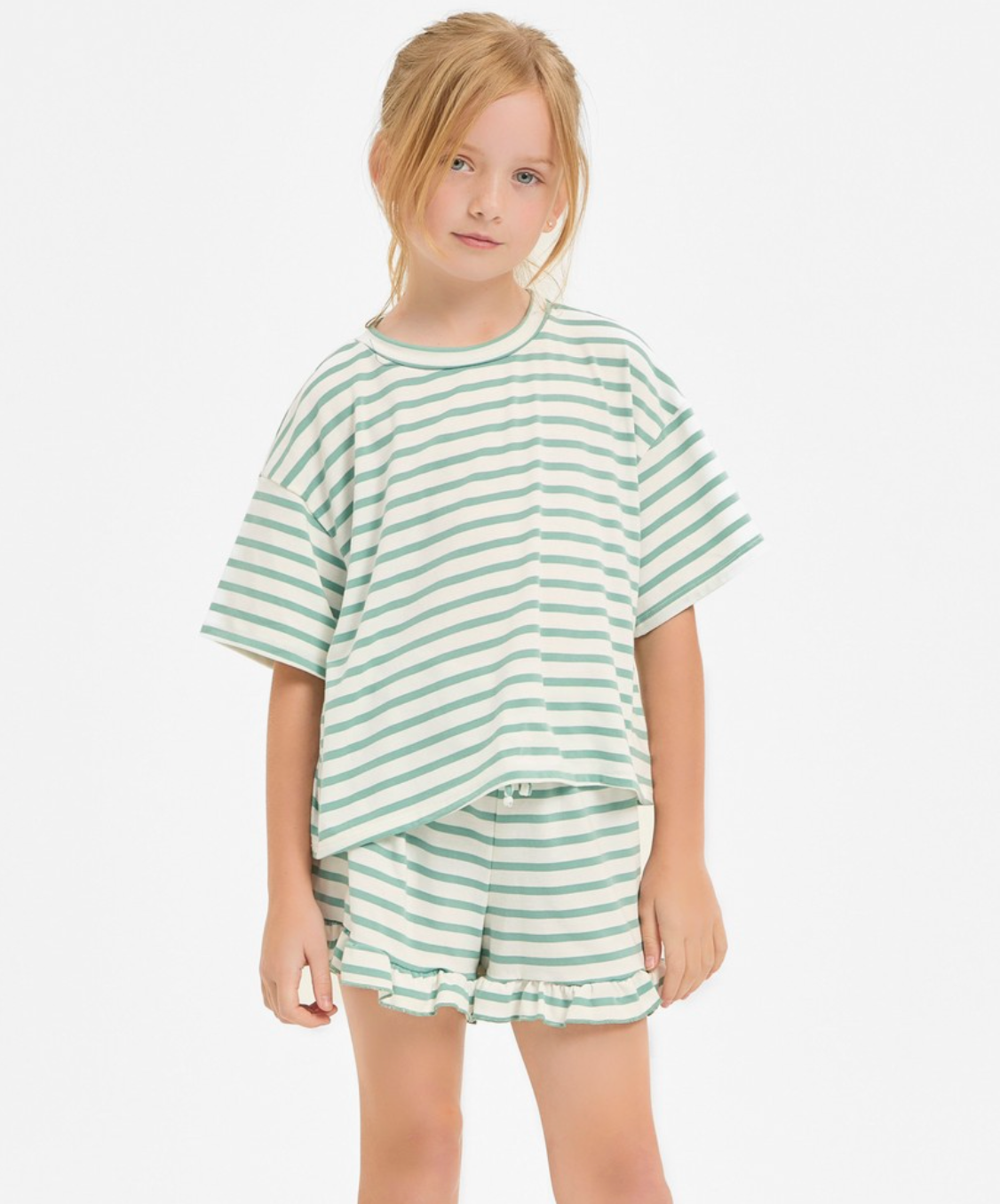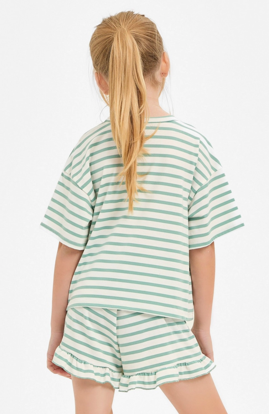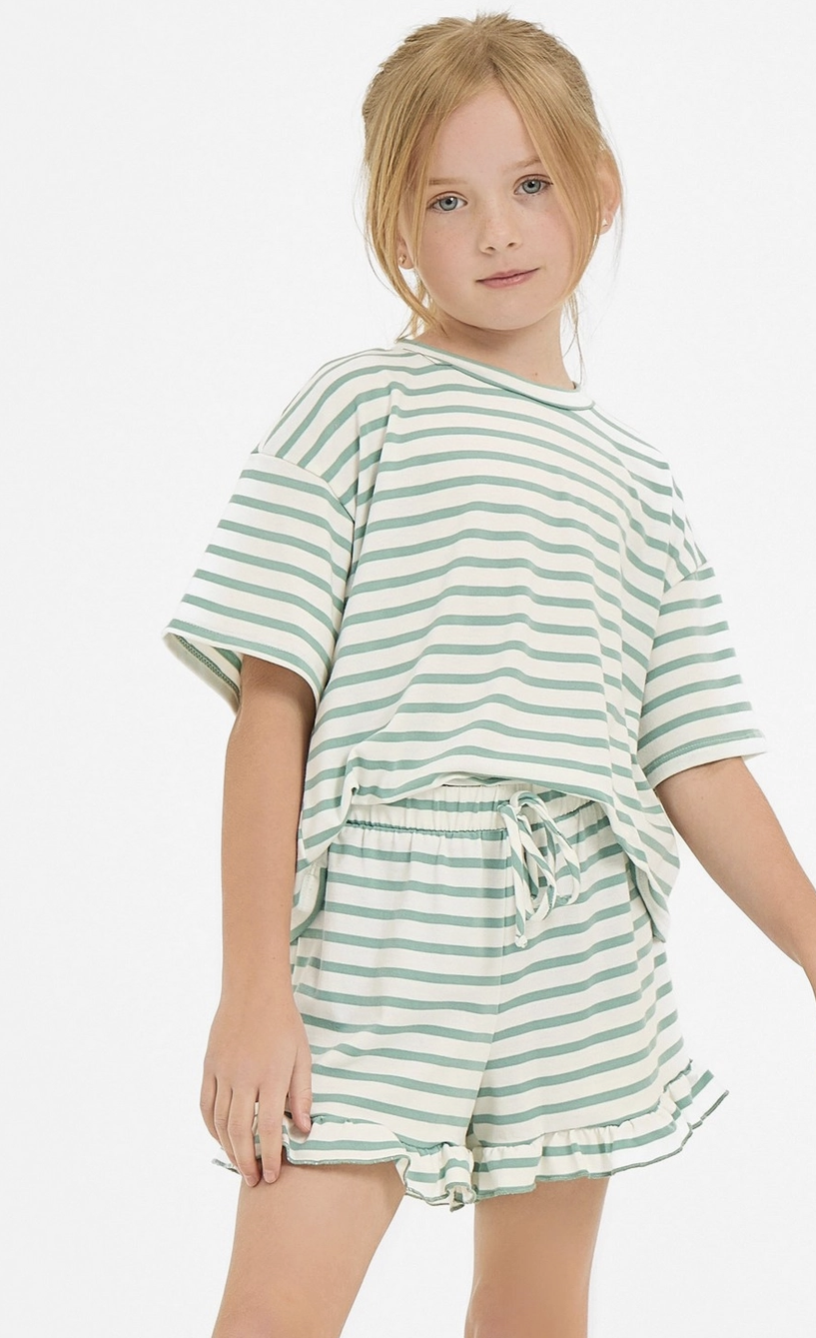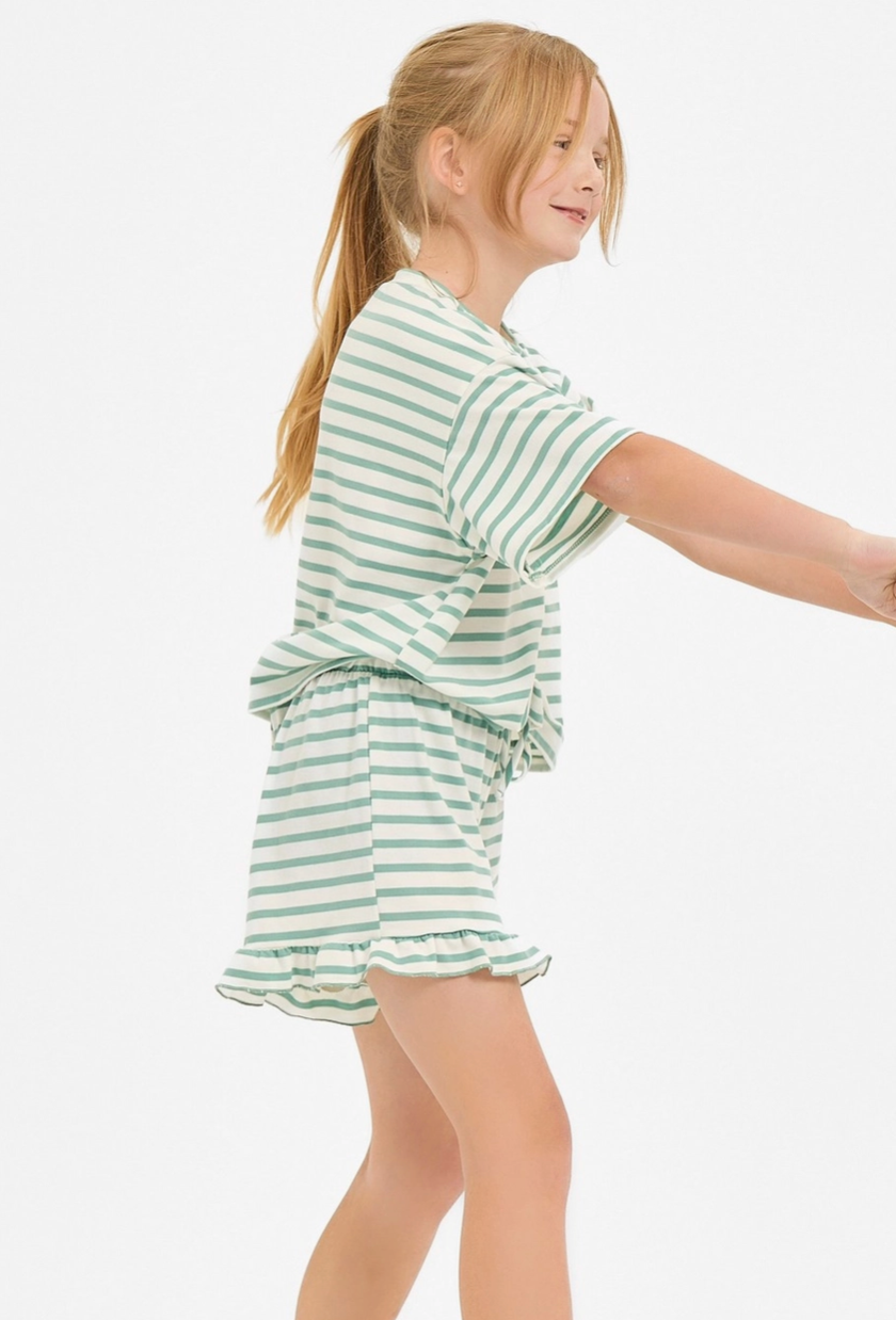 Good Girl Mint Stripe Top/Ruffle Short Set.