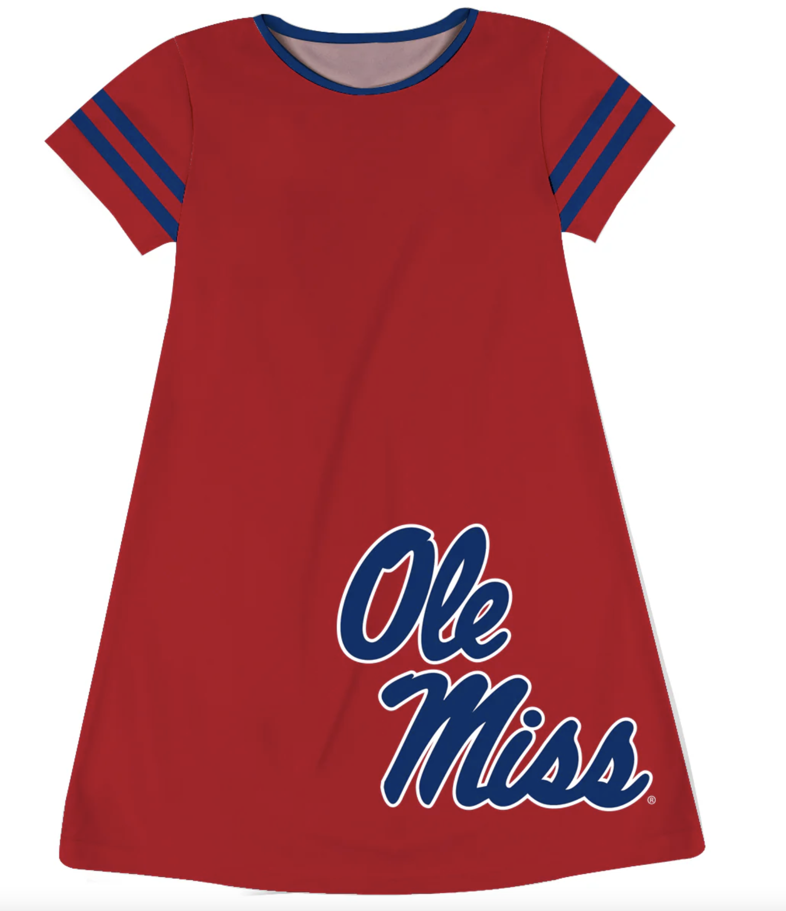 Celebrate and cheer on game day with our Mississippi Rebels Big Logo Red Stripes Short Sleeve A Line Dress An Officially Licensed product sold by Vive La Fete A Line dress