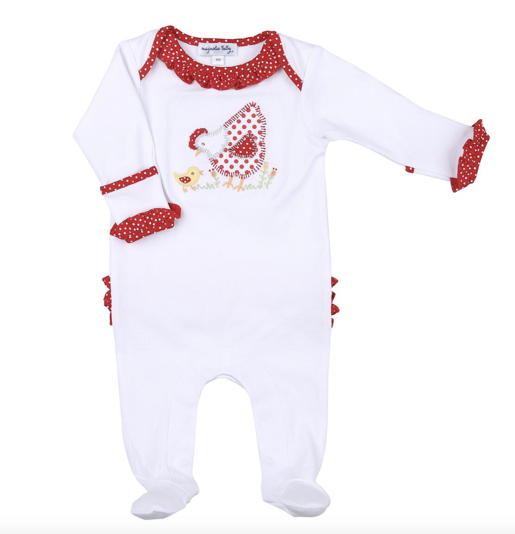 Magnolia Baby Mother Hen Combo White Red Ruffle Lap Footie.