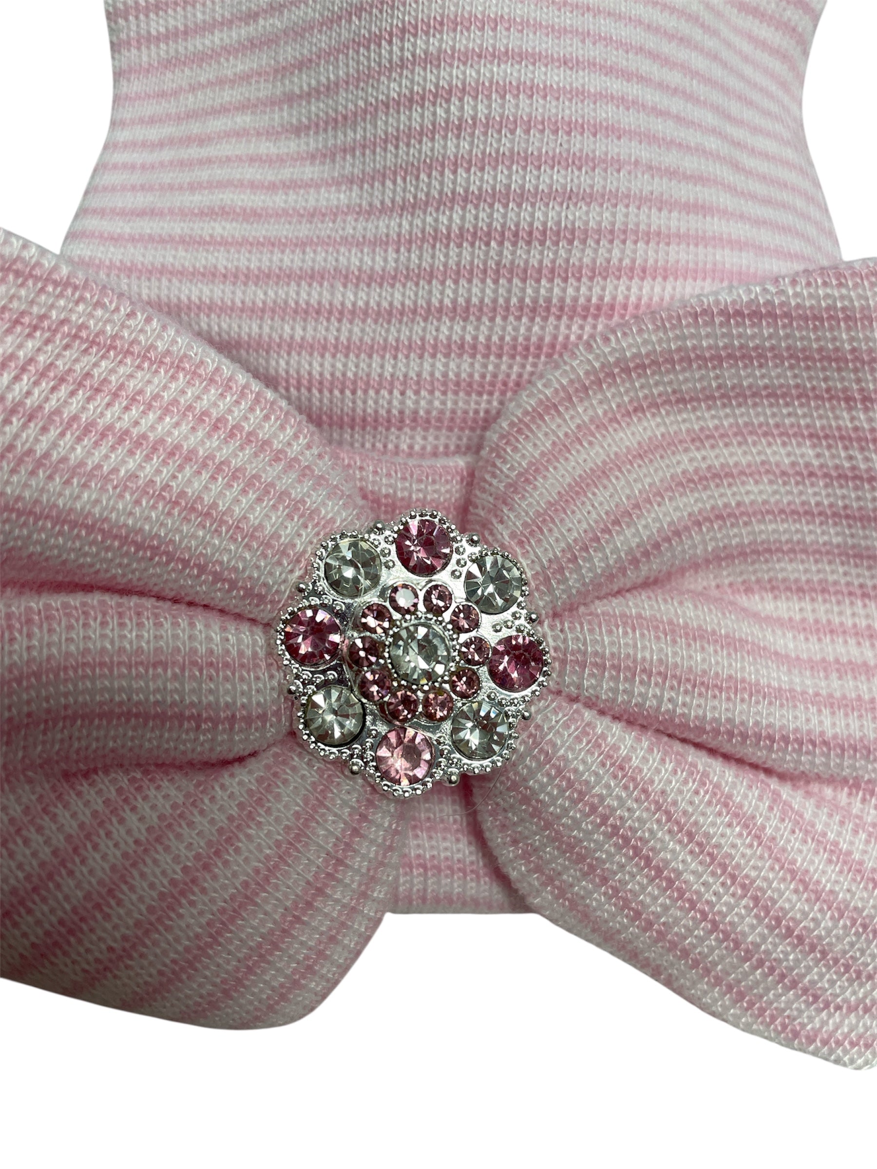 - Beanie comes in 2 colors: White and Pink Pinstripe